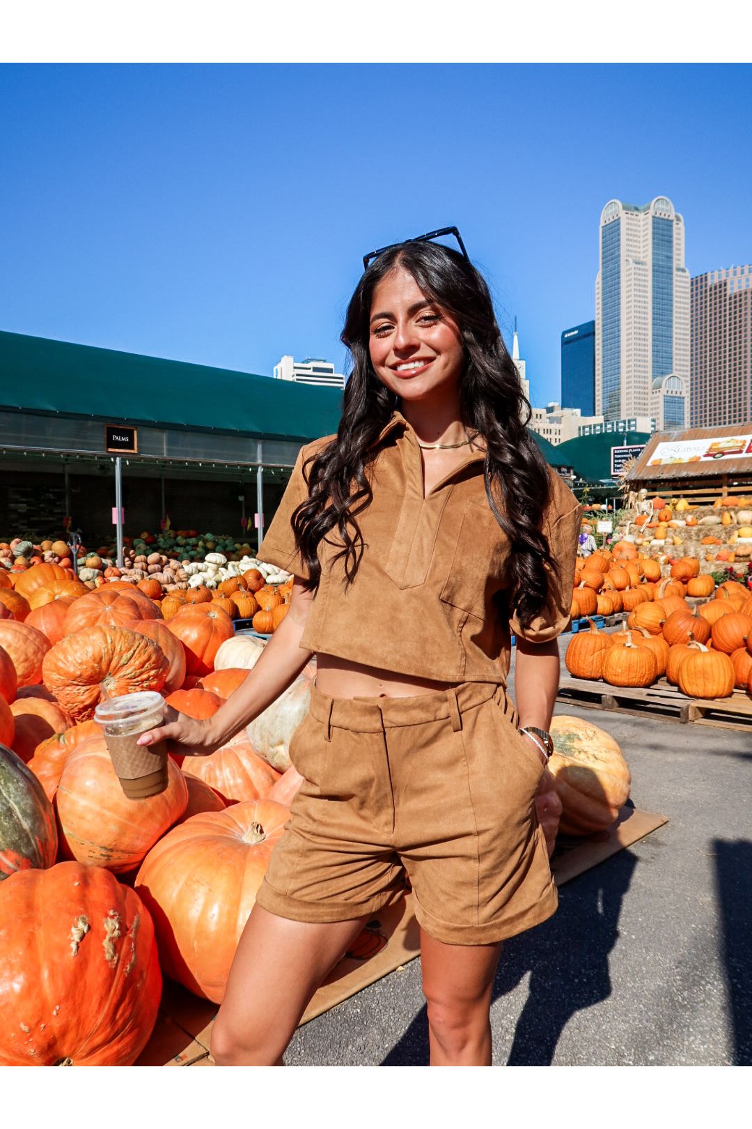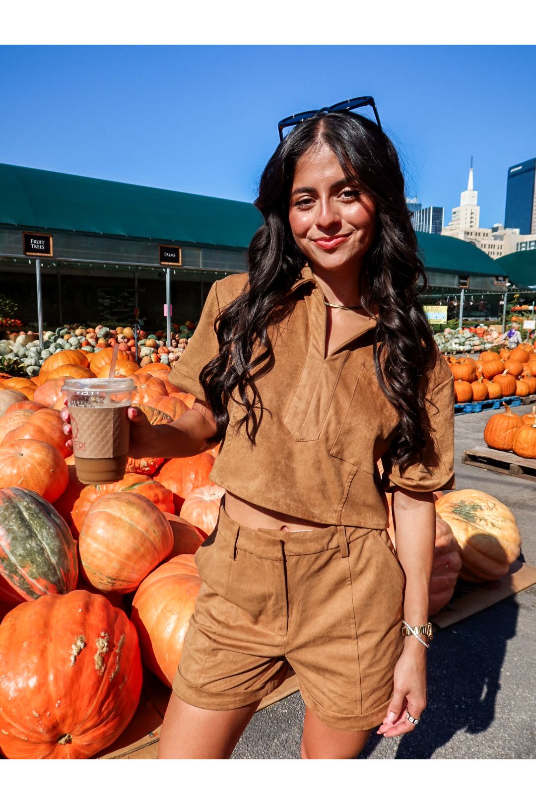Meet the Suede the Day Set—a luxe twist on a classic neutral that’s anything but boring. This matching two-piece set features soft suede-like fabric in a rich camel hue, blending structure and softness for that effortlessly put-together look. The cuffed high-rise shorts bring a tailored edge, while the cropped collared shirt keeps things cool with a boxy fit and button-front detail. Worn together or styled apart, this set makes neutral feel like a power move.