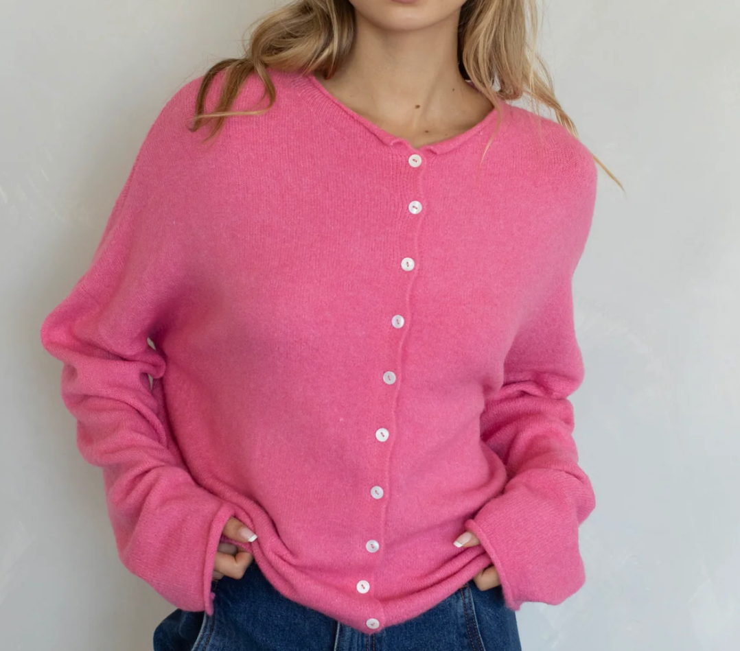 Soft, sweet, and effortlessly cozy—the Piper Cardigan in rose is the layering piece your wardrobe’s been waiting for. With its lightweight knit, classic button-up front, and dreamy pastel hue, this cardigan adds a feminine touch to any look. Wear it on its own or throw it over your favorite tank or dress for an easy, polished finish.