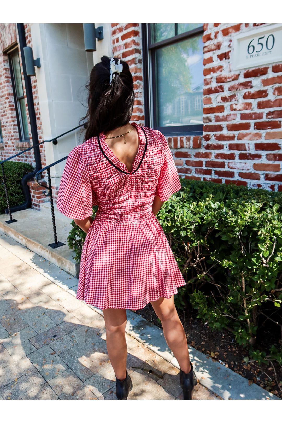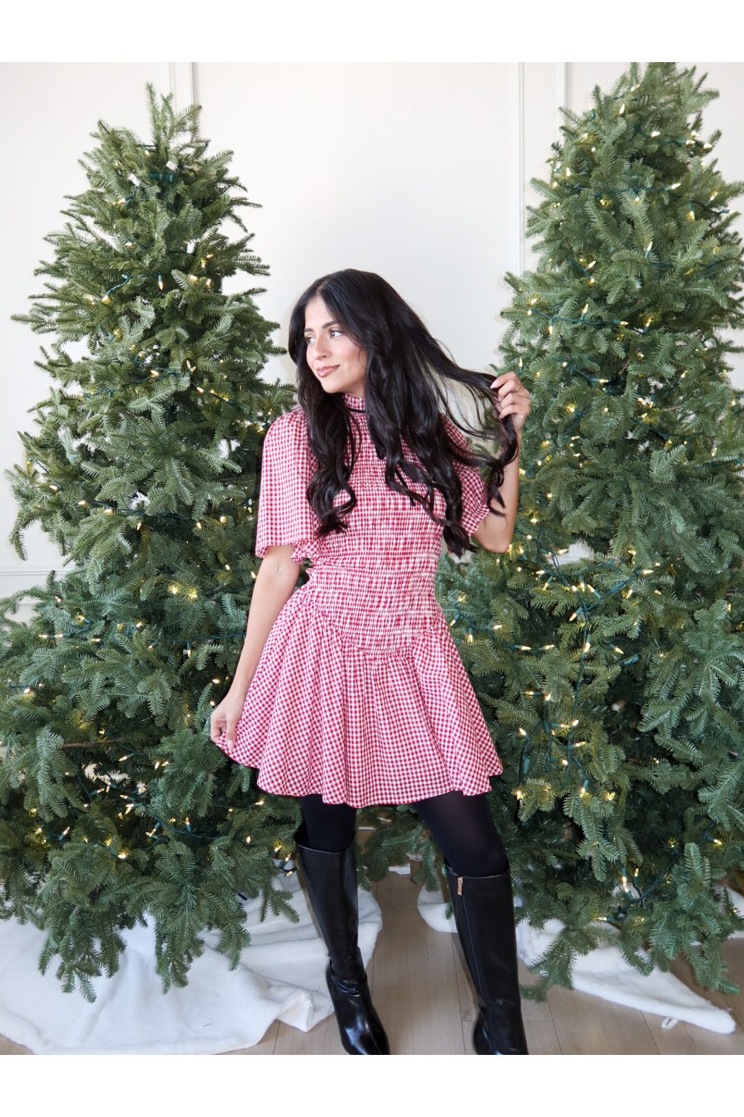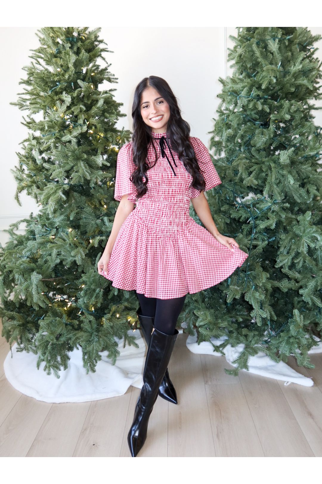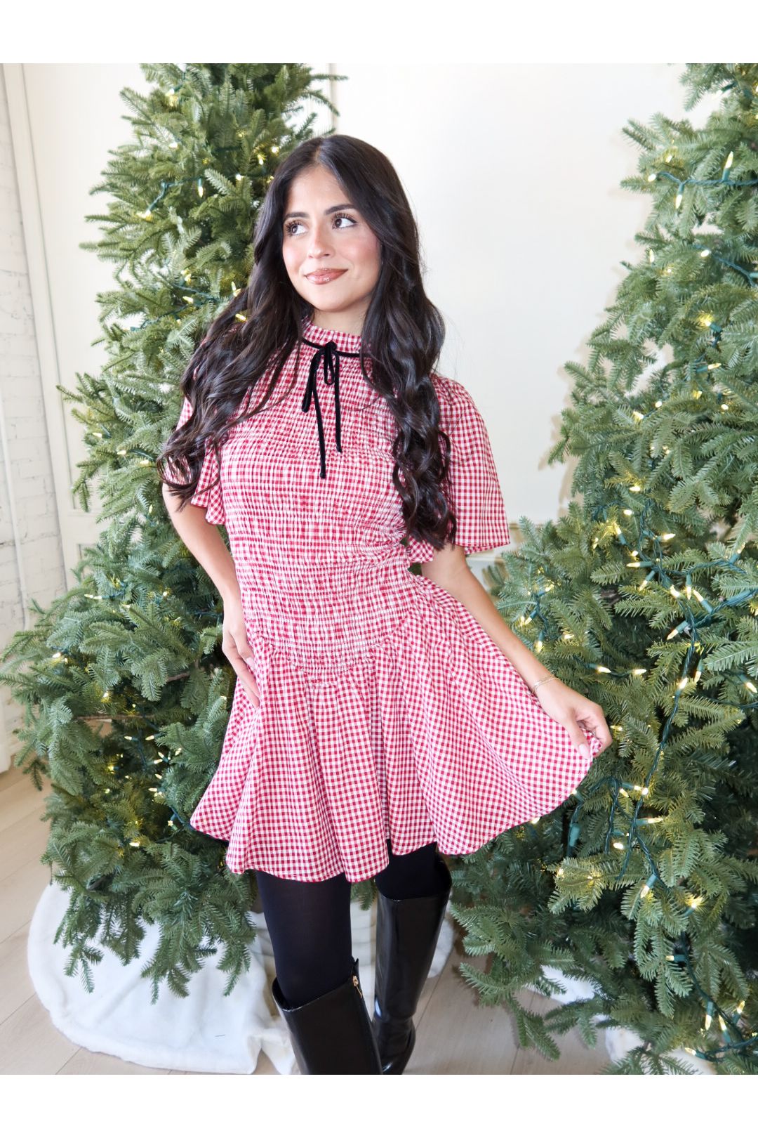– Red gingham mini with a flattering fit-and-flare silhouette
