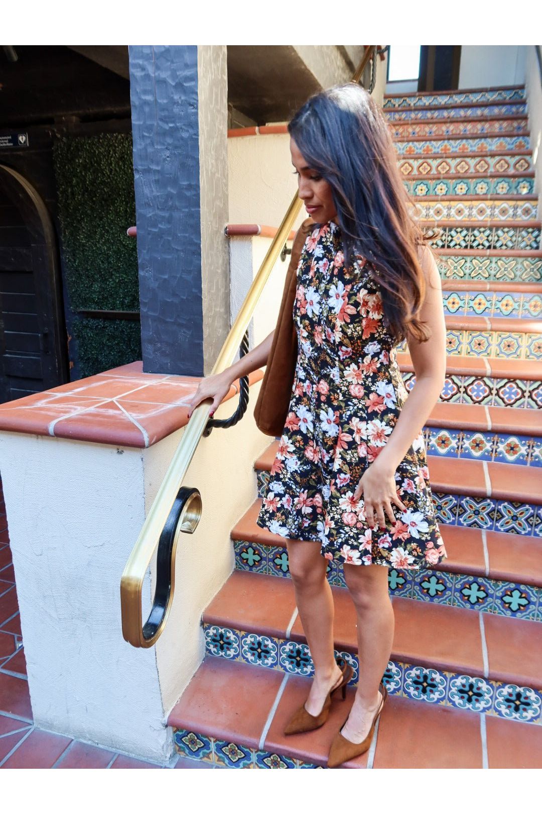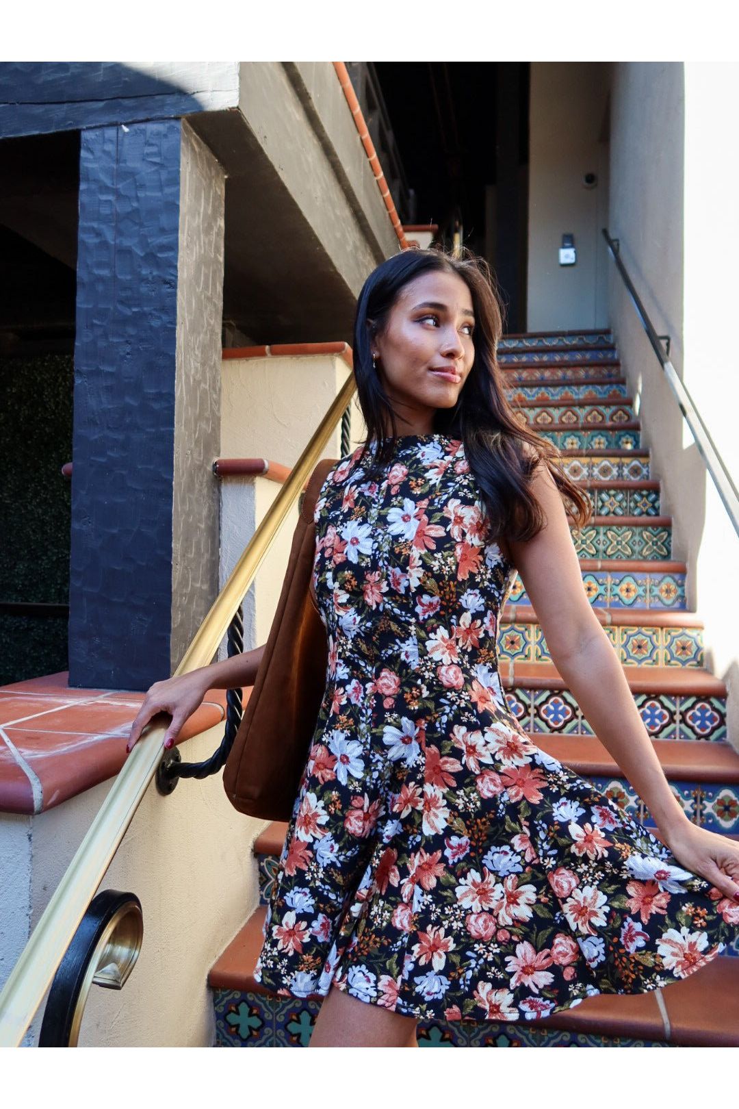 Bring the drama (and the florals) in the Dark Blooms Dress. This sleeveless mini stuns with a bold allover floral print set against a moody black background, giving you a romantic-meets-edgy vibe that works year-round. The subtle fit-and-flare shape and darted bodice create an ultra-flattering silhouette that moves with you. Just zip it up and go—no styling stress required.