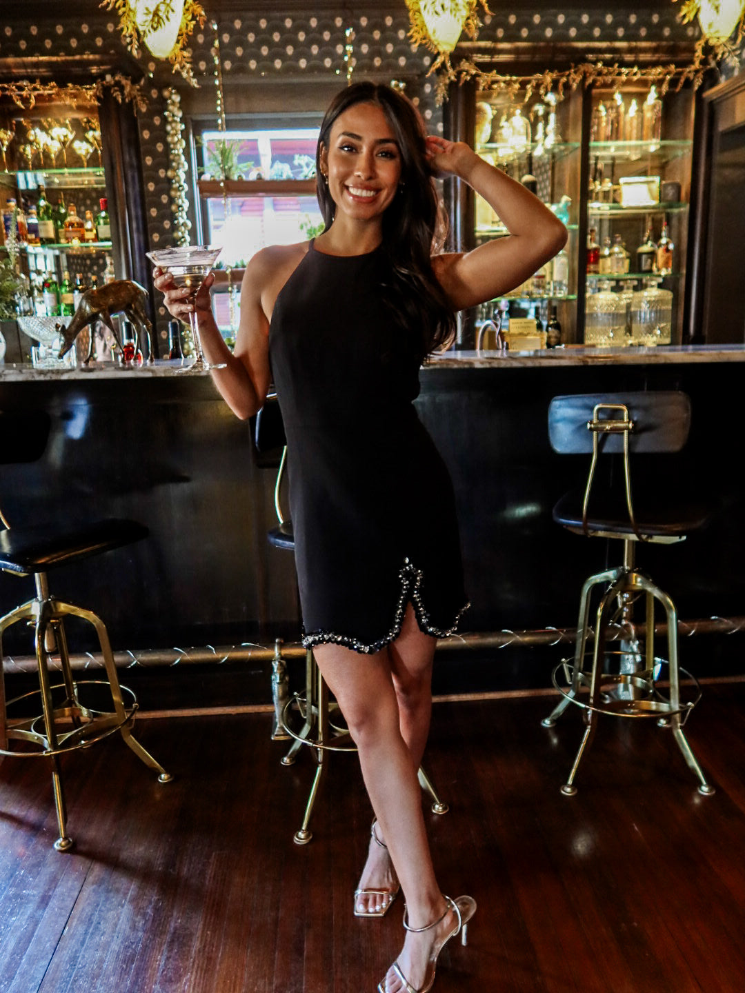 Pair with strappy heels and statement earrings for the ultimate holiday-ready look — it’s your LBD with a twist.