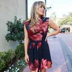 Moody, feminine, and effortlessly chic. The Noir Bloom Mini features a black base with soft red floral detailing, a clean mock neckline, and a flowy A-line silhouette that moves beautifully with every step. It’s the perfect balance of bold and wearable — the kind of dress that makes a statement without trying too hard.
