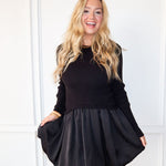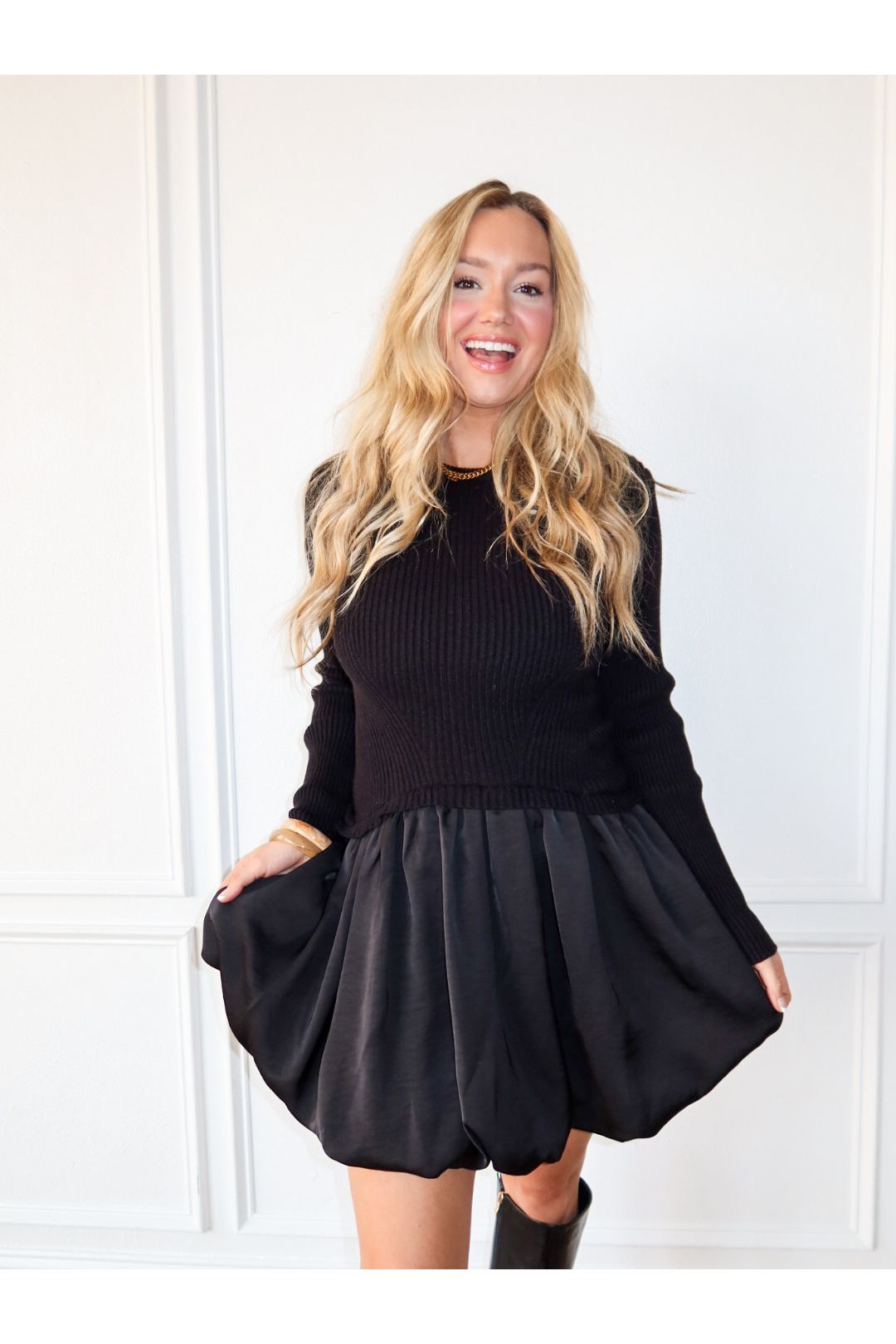 Chic and full of personality, the So Charmed Sweater Mini Dress combines a sleek ribbed sweater top with a voluminous bubble skirt for the ultimate playful-meets-sophisticated vibe. The long sleeves and mini length make it a standout piece for cooler nights out or cozy yet stylish gatherings.