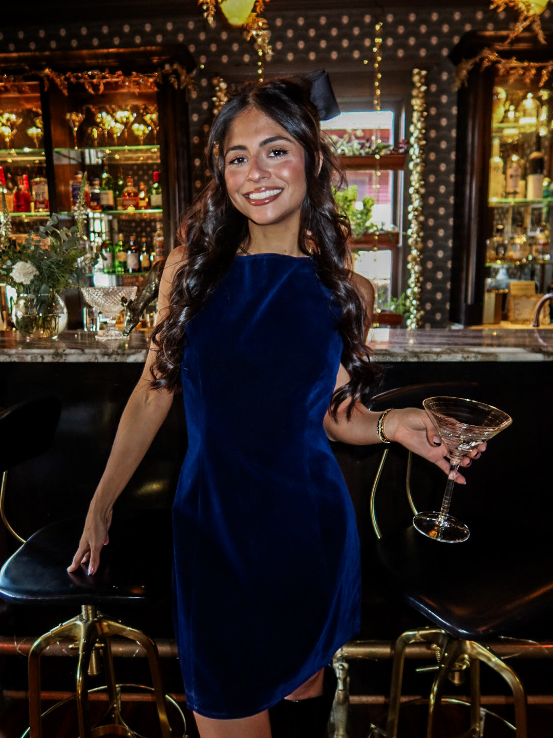Velvet Skyline Mini Dress - Navy