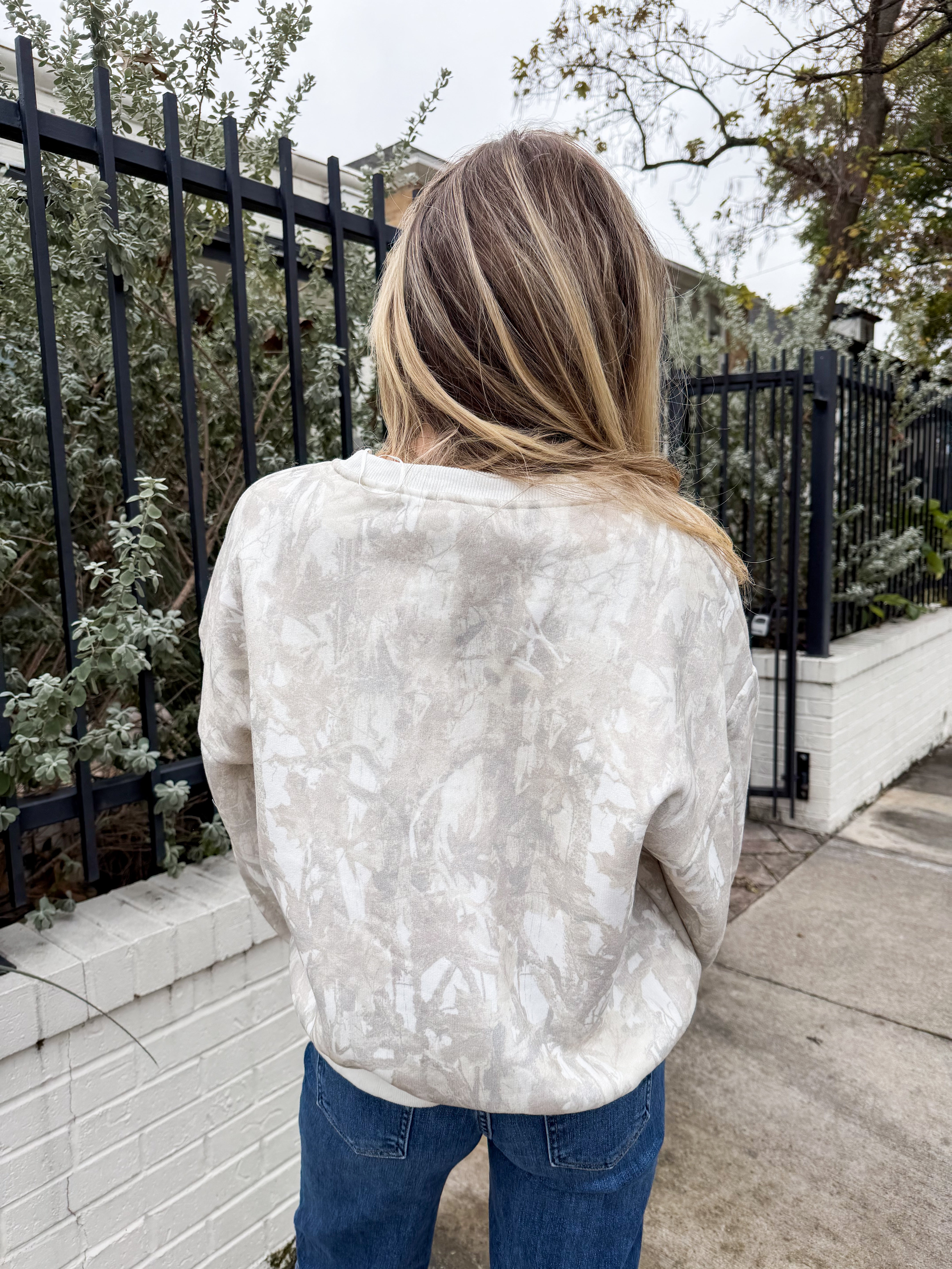 Cool, cozy, and casually elevated. The Camo Mode Sweatshirt brings a modern twist to a classic crewneck with its soft neutral camo print and relaxed fit. Perfect for your off-duty days, it’s the throw-on-and-go piece you’ll live in all season long.