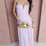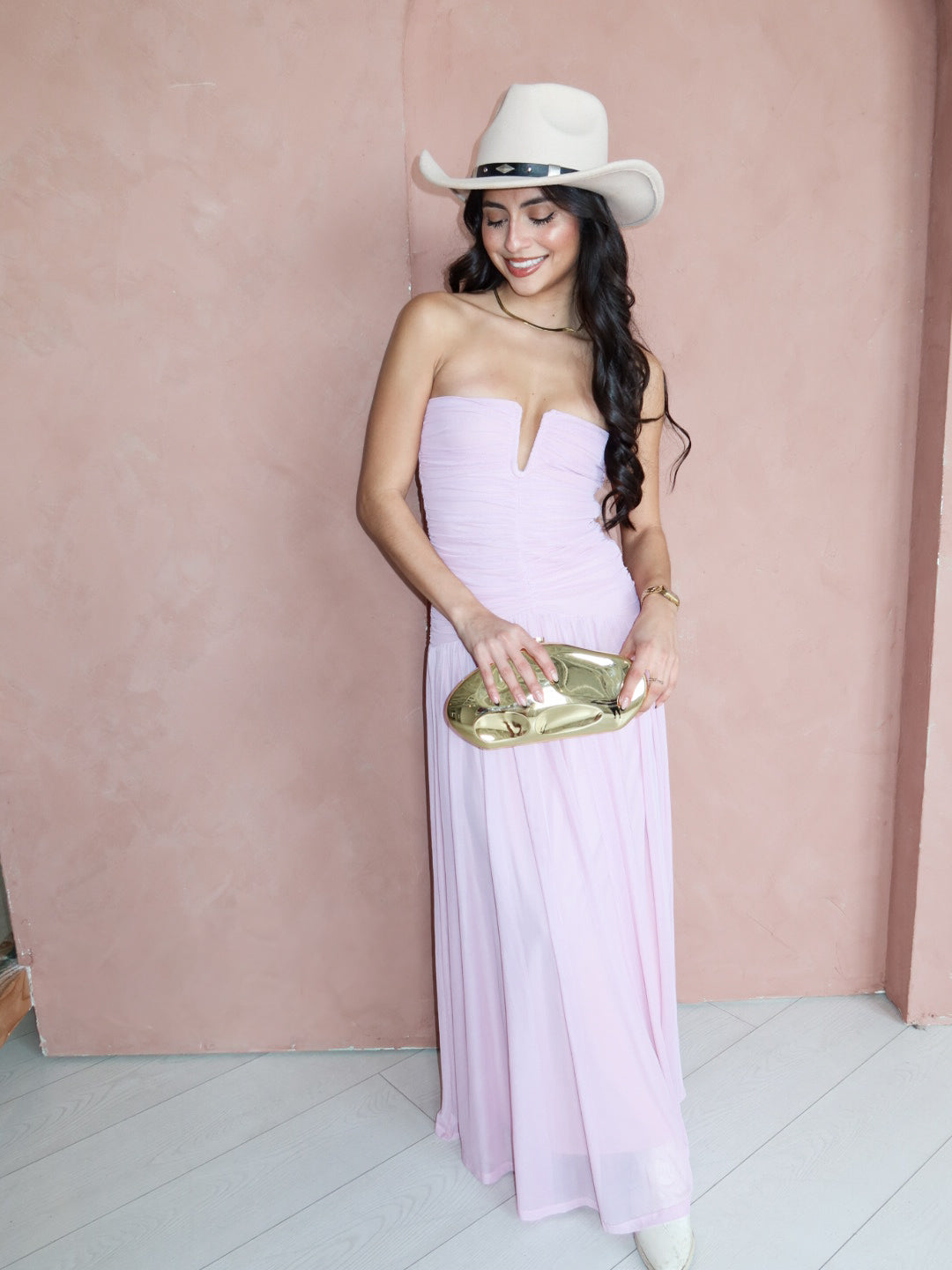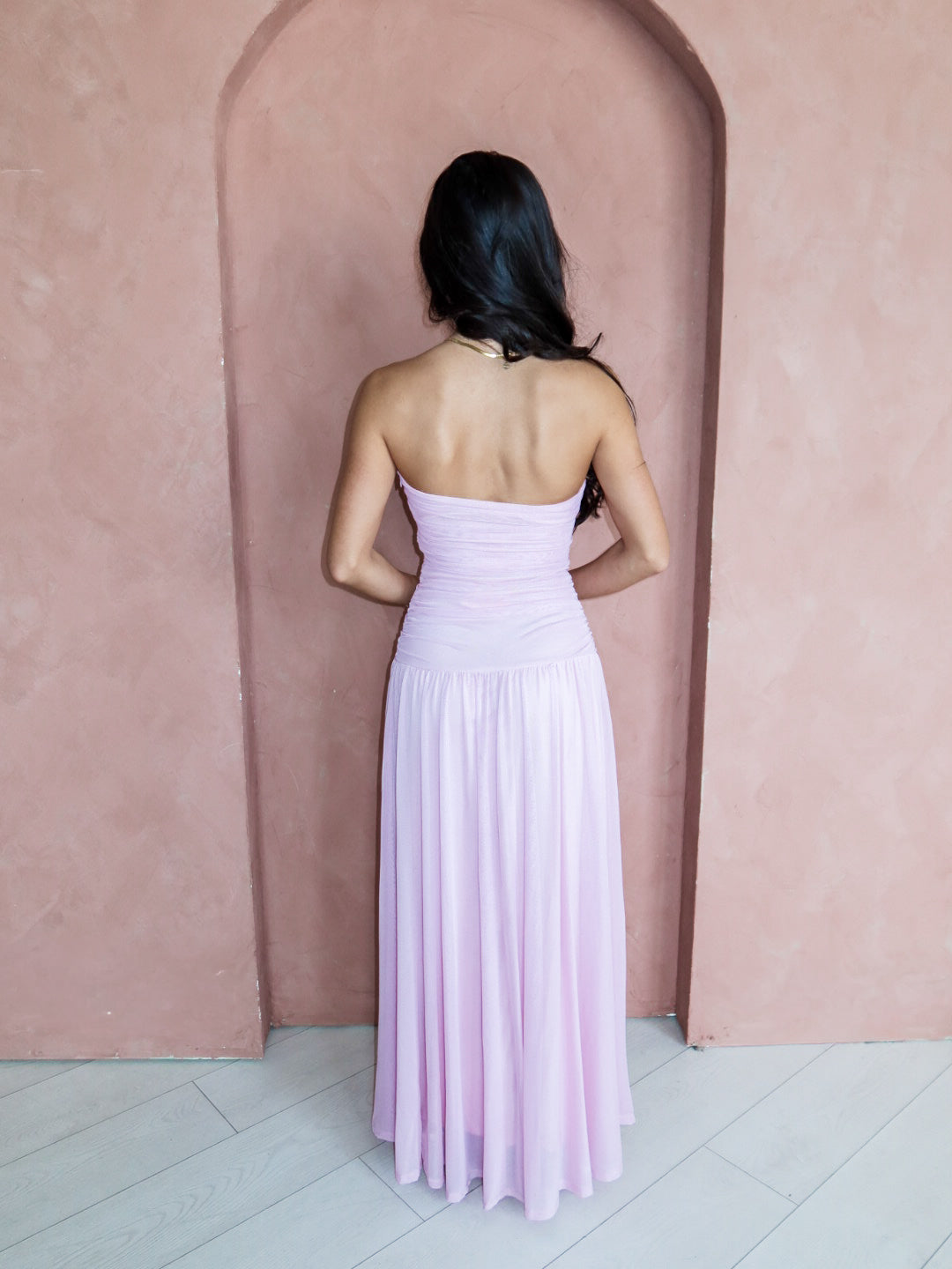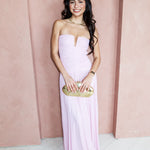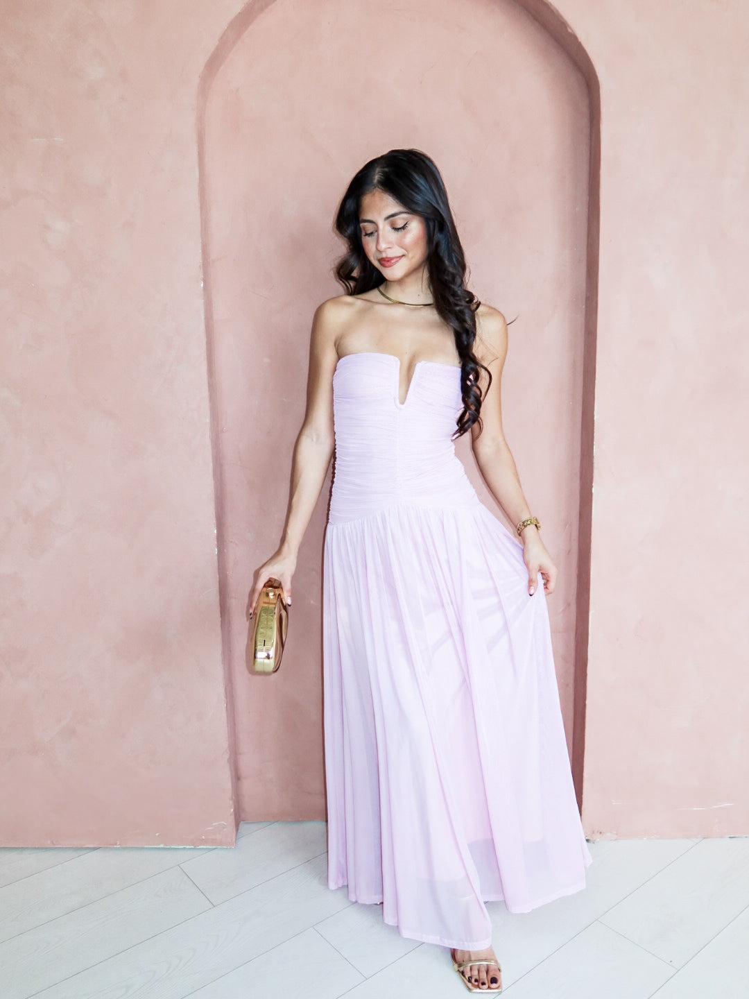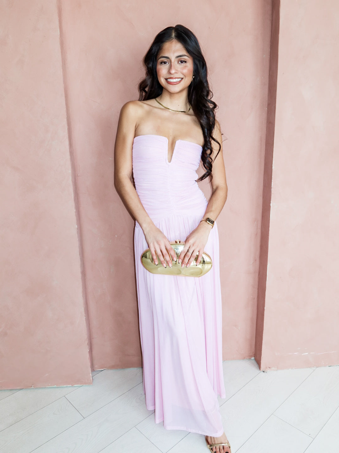 Soft, romantic, and effortlessly elegant. The Beverly Dress features a beautifully ruched bodice with a sweetheart neckline and delicate spaghetti straps that create a flattering, feminine silhouette. Finished with a flowy midi skirt in a soft blush pink, this dress is made for weddings, showers, and every “dressy but not too dressy” moment in between.