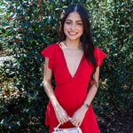 Bold, feminine, and effortlessly pretty. The Crimson Crush Mini Dress features a flattering V-cut neckline finished with delicate red lace trim for a romantic touch. Designed in a lightweight, flowy polyester fabric, this mini dress moves beautifully while keeping things comfortable and easy to wear.